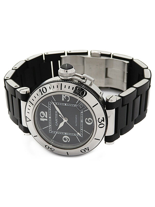 【Cartier】【OH・仕上済】カルティエ『パシャ シータイマー オートマティック』W31077U2 メンズ 自動巻き 3ヶ月保証【中古】 名 称 パシャ シータイマー オートマティック 型 番 W31077U2(2790) 年 式 不明 タイプ メンズ カラー ブラック 種 類 自動巻き時計 日差(平置) +7秒(使用状況により変化します) 材 質 ステンレス/ラバー/ガラス風防 サイズ ケース:直径約40mm 腕周り:最大約19.5cm ギャランティー 海外販売店 2010/11/09 付属品 外箱、内箱、ギャランティー、冊子、提携工房修理保証カード 保証期間 3ヶ月保証 ランク A 品 状 態 若干の使用感や傷は見られますが状態の良い中古商品です。
